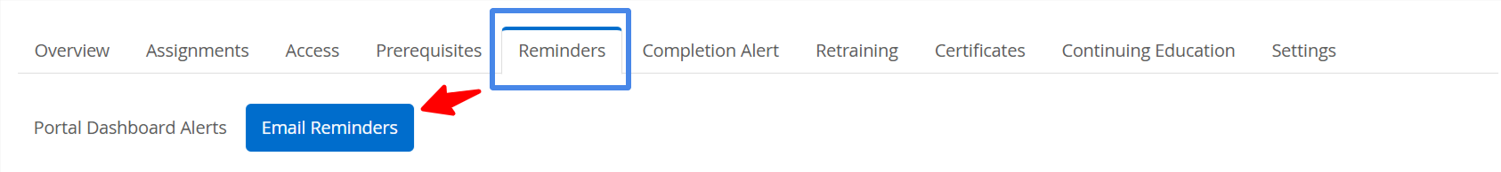 4. Click the ‘Reminders‘ tab, and then click the ‘Email Reminders‘ sub-tab.