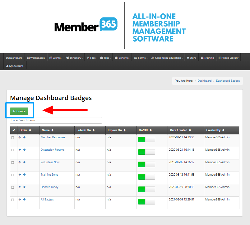 3. On the ‘Manage Dashboard Badges’ page, click ‘Create‘.