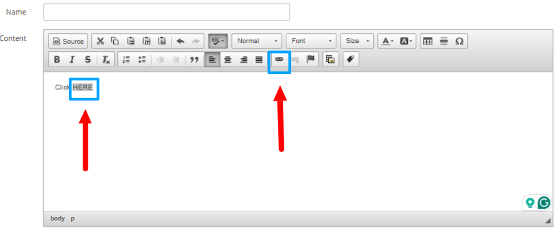 5. Highlight the text you would like to turn into a link, and click the indicated chain-link button.