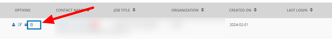 3. Find the contact either by locating their name in the list or entering their name into the search bar, and then click the trash bin icon next to their name.