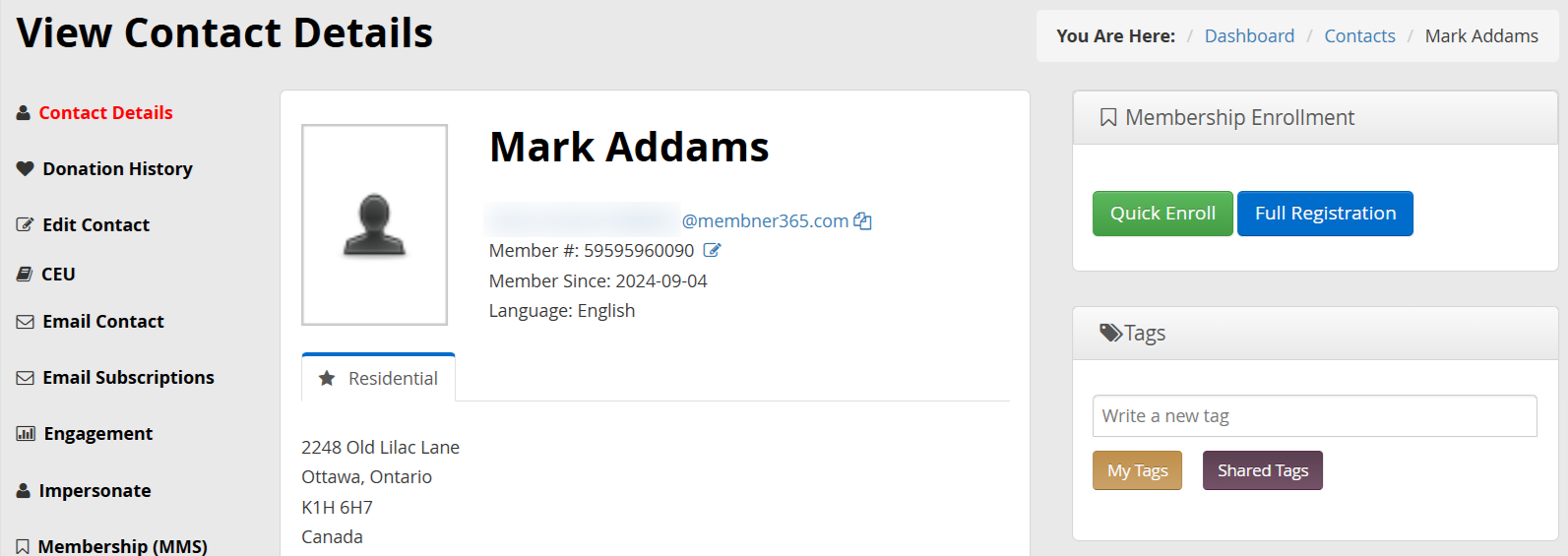 Clicking the ‘View Record’ button will bring you to the full contact record Member365 believes to be duplicate.