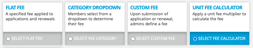 1. When configuring your Membership Fees, select the ‘Unit Fee Calculator’ option.