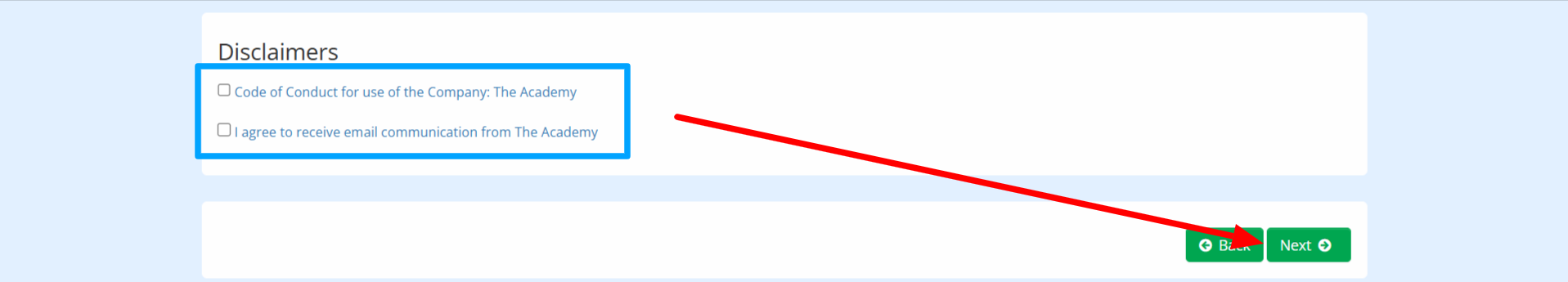 And the last box, will display the Code of Conduct and email consent disclaimers and will display any additional disclaimers you have added as well. Clicking on the name of a disclaimer should display it.