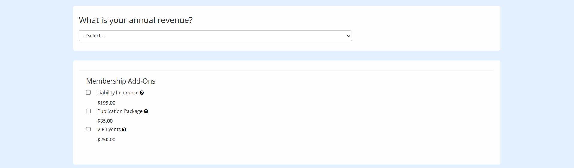 8. If you have fee categories, additional questions, or membership add-ons, you won't see the 'Disclaimers' box yet. Instead, the next page will present you with any Extended Fields form that you have attached to this membership.