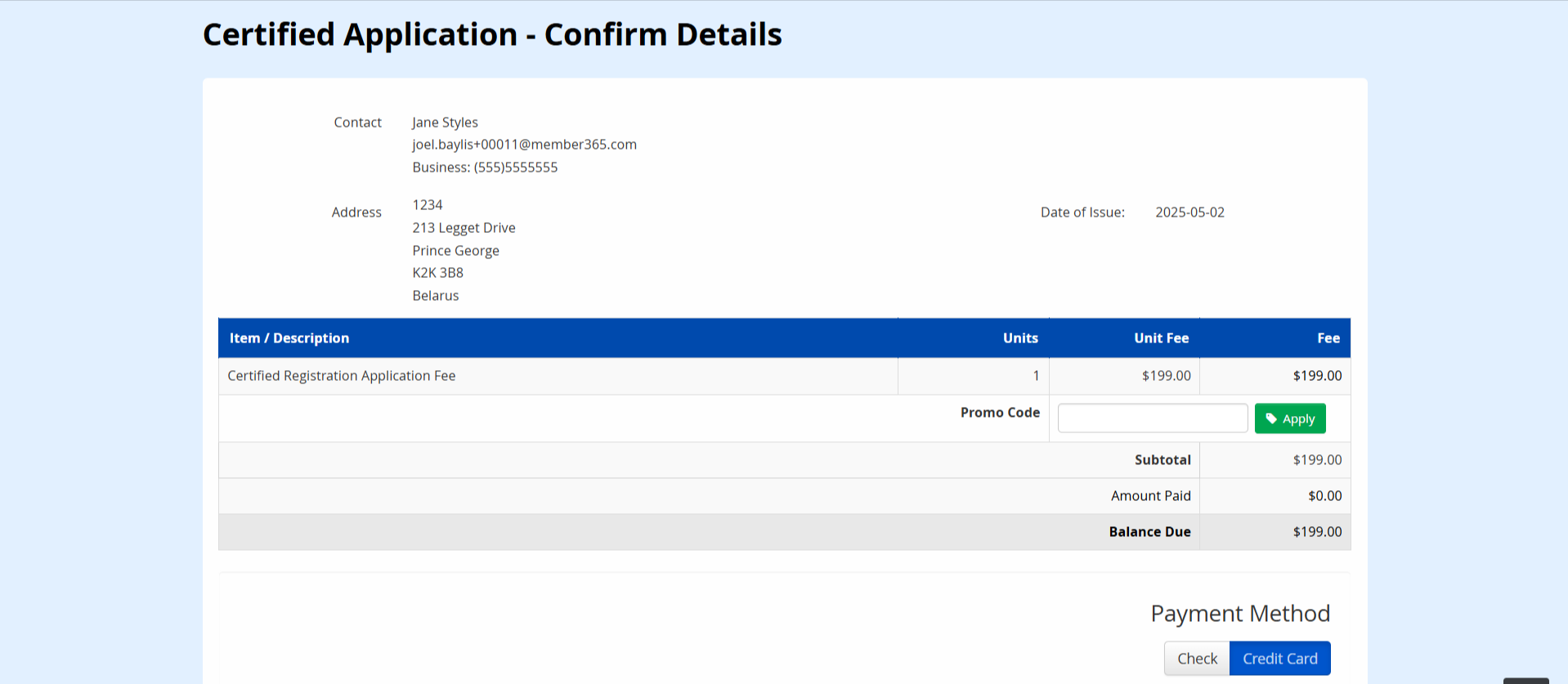 1. Find the membership category whose application you would like to test. Learn how to access the membership application link.