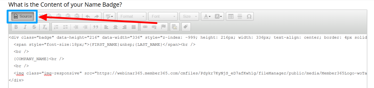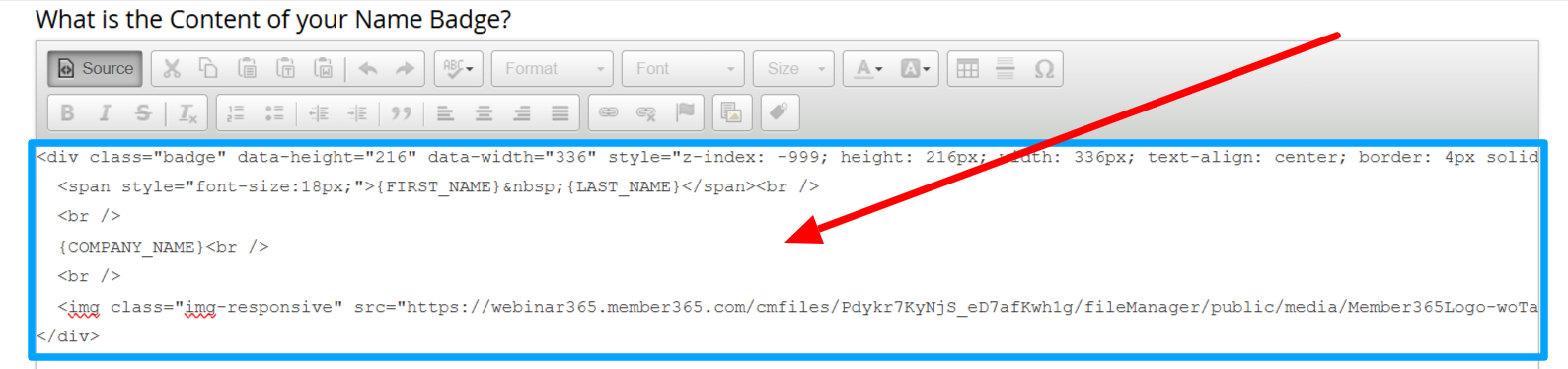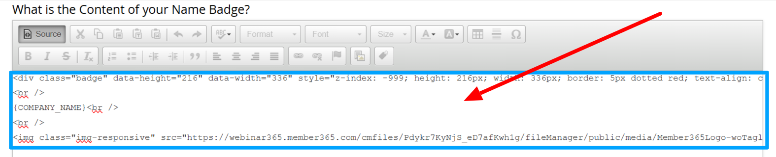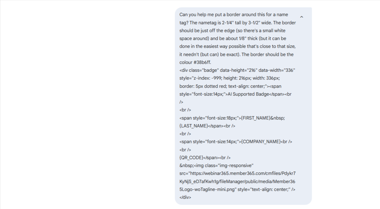 Copy the output from the AI, navigate back to the name badge editing page within Member365, and replace the existing code with the code you just copied.