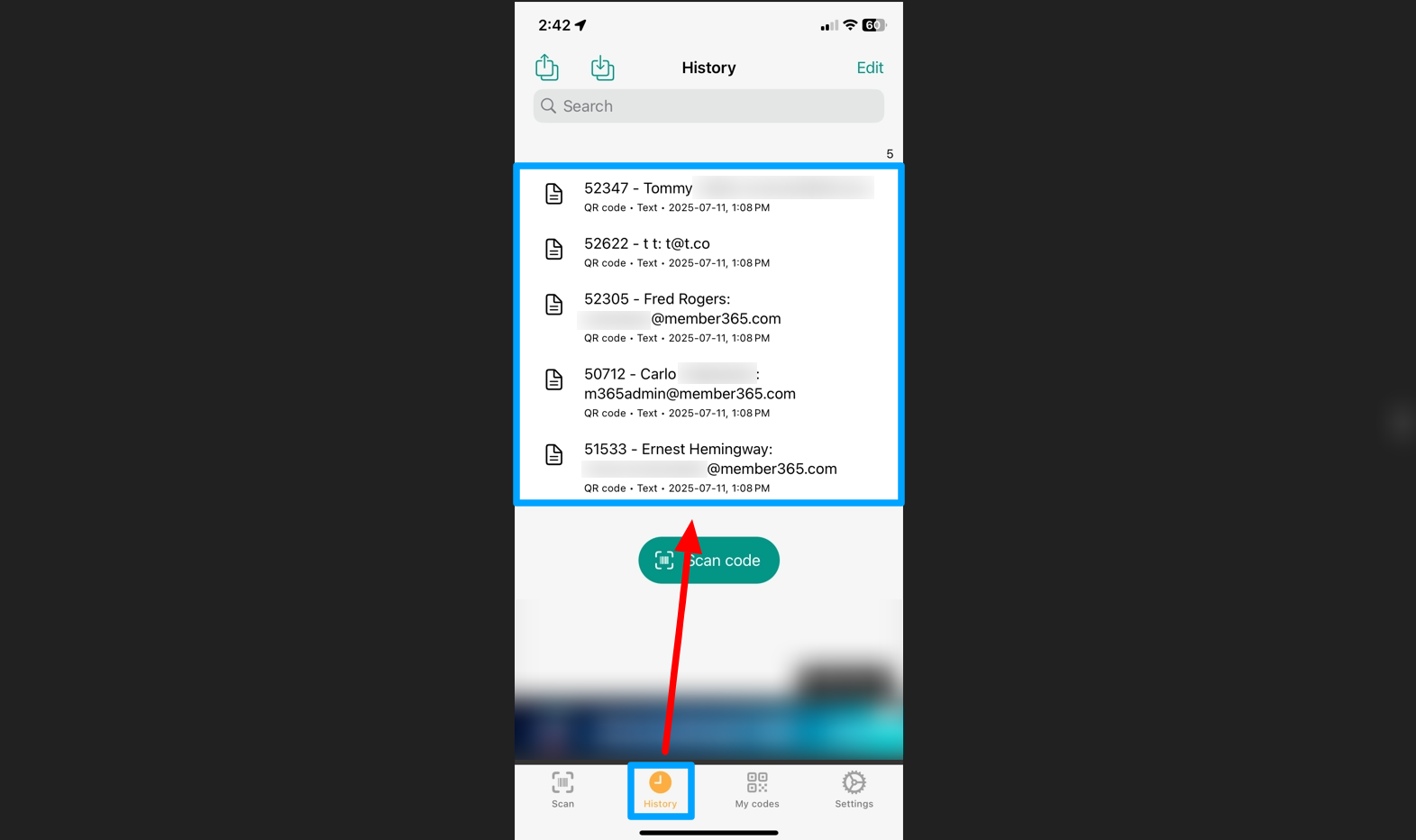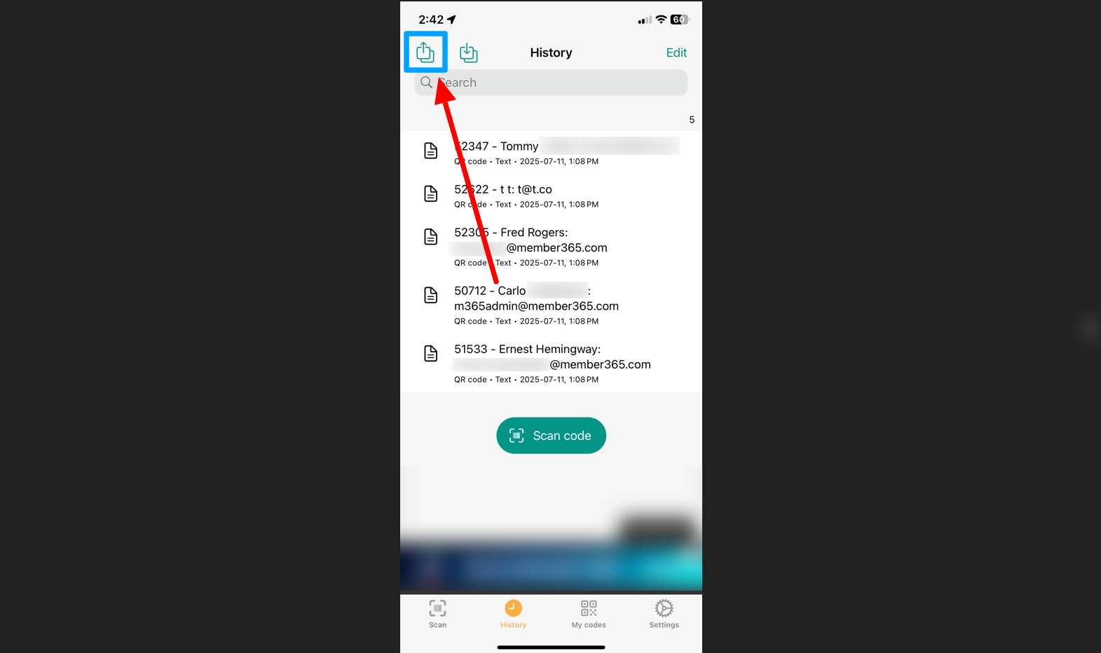 Once everyone has checked in, click the 'History' tab on the app and you'll see a list of everyone who's QR code you scanned.