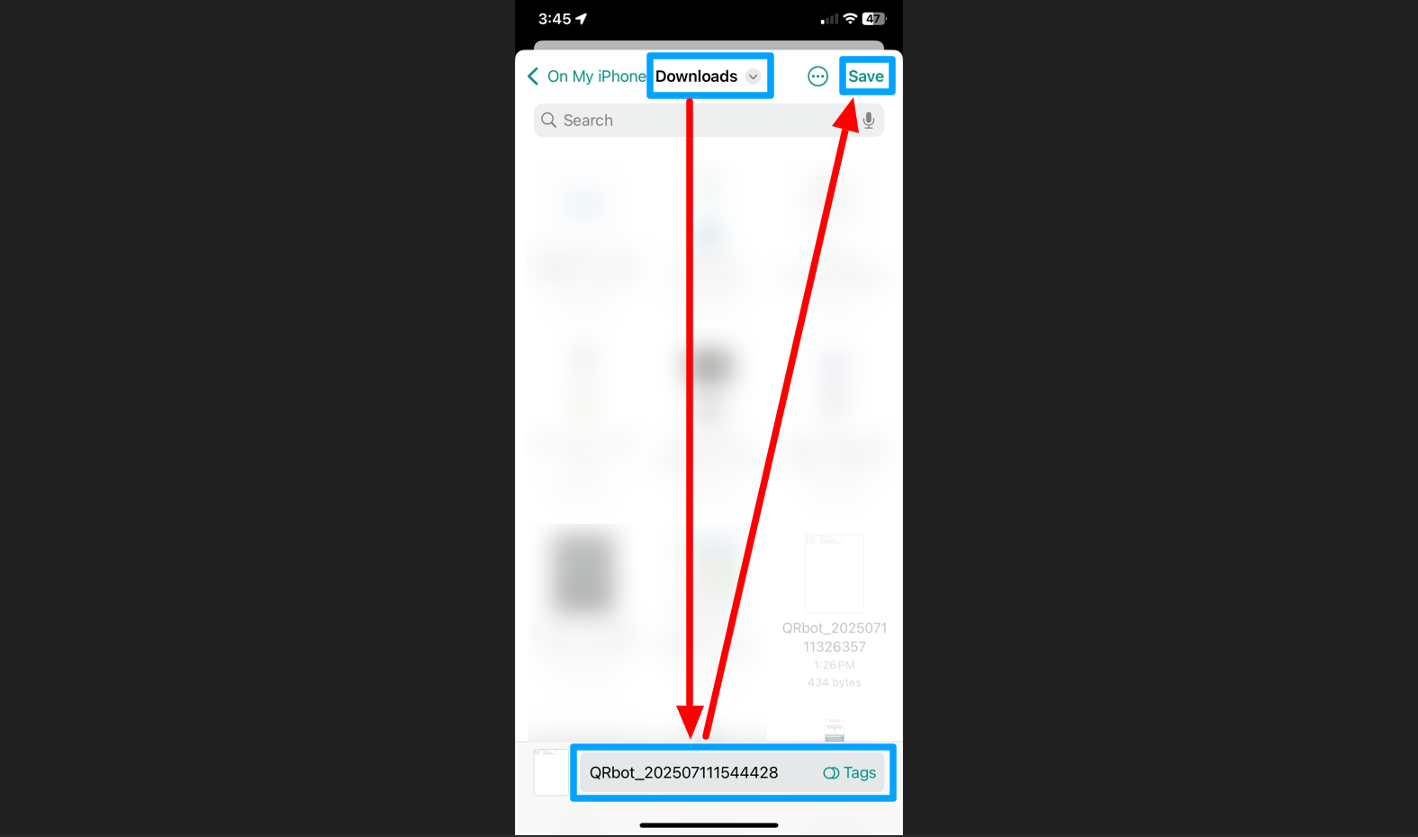 On your iOS device, in the App Store, search for "QRbot" (QRbot App)
