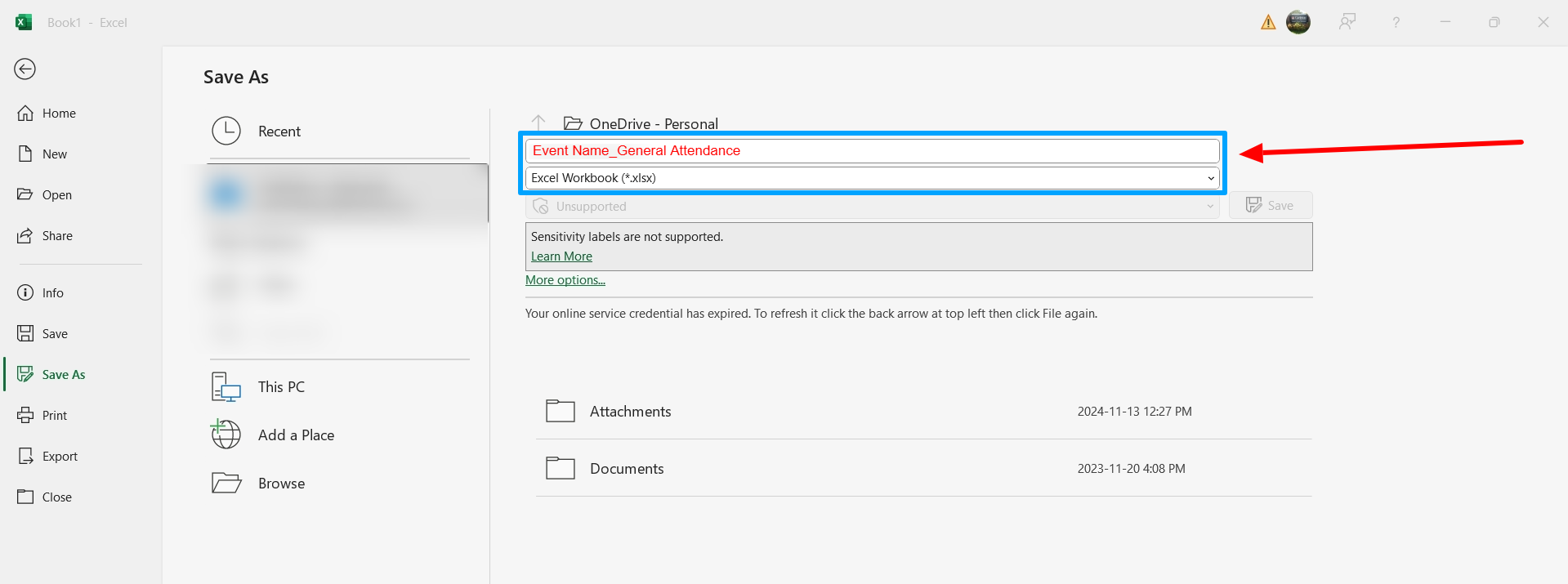 Save that file as an .xls or xlsx file type with a name and in a location that's easy to remember.