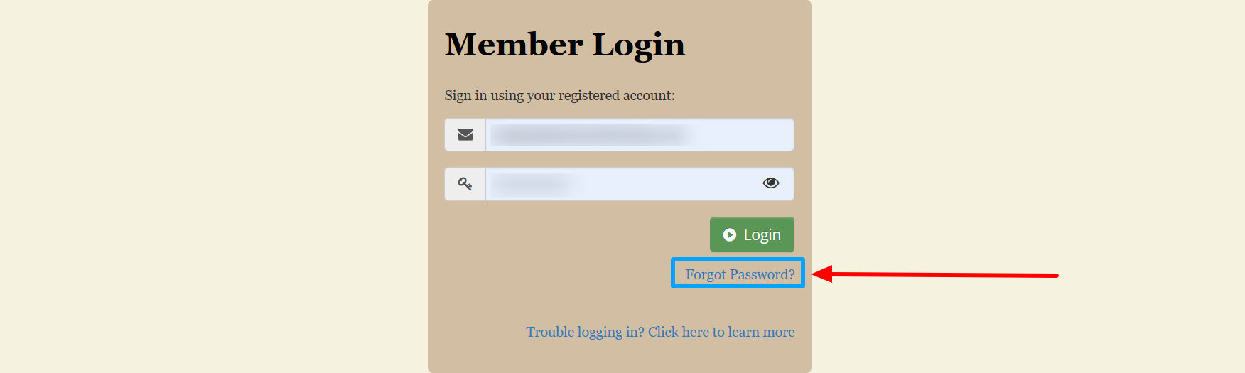 On the login page, under the username and password fields, there is a 'Forgot Password?' link. Click it