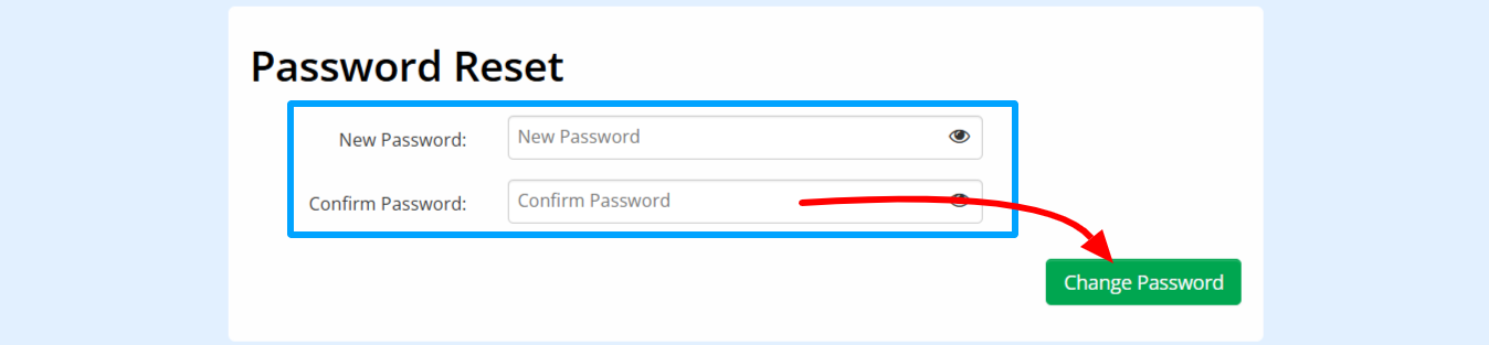 This will open a webpage that allows you to enter and confirm a new password. Once you've done this, click 'Change Password'