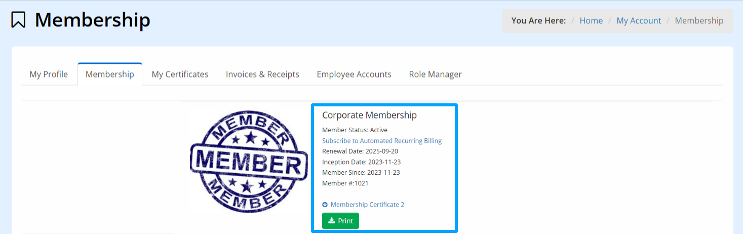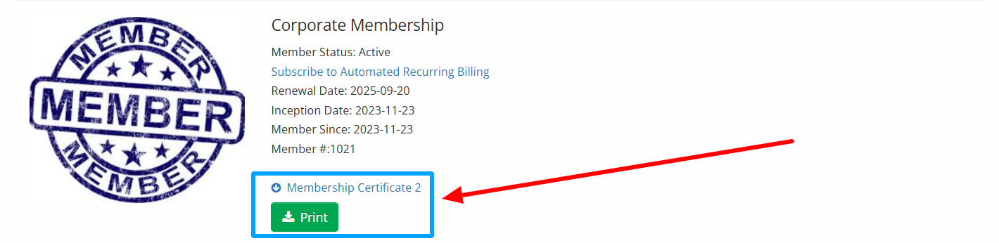 To get your membership certificate, simply click the certificate link or the 'Print' button, and save it as a pdf or print it